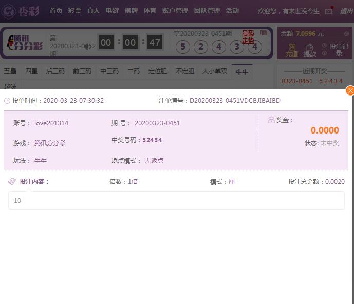 不信邪,换个彩种继续无牛,还是失败了!