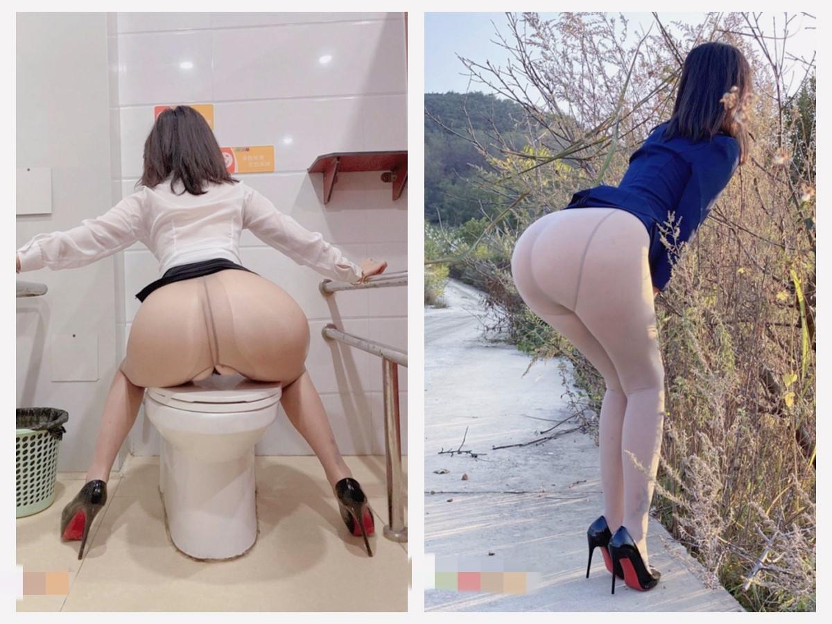 黑丝、肉丝加上鱼网,配上这翘臀真是绝了,让人好有抽插的冲动,再加上户外露出,当真要就地正法。