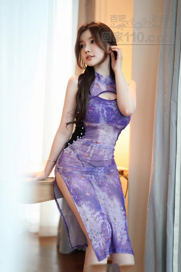 [美腿翘臀] 最新糯美子Mini 性感写真发布紫色轻透薄纱旗袍服饰【37P】 |