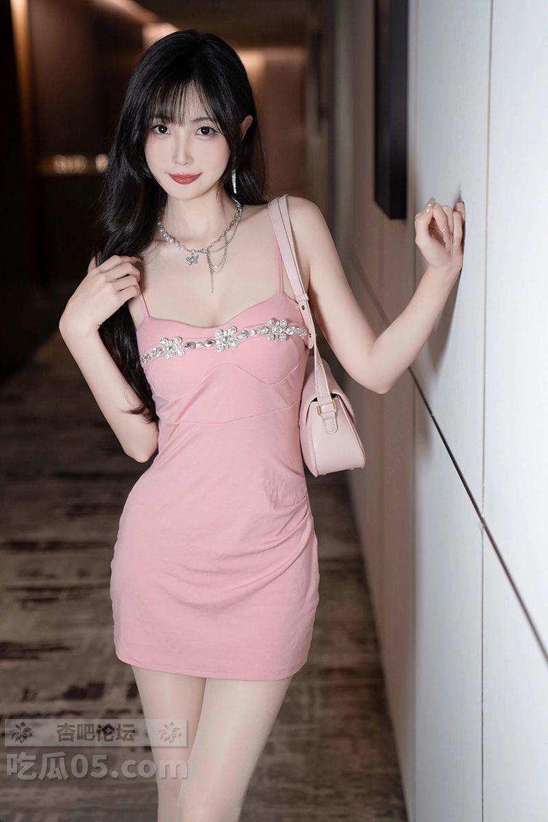 长发性感嫩模林星阑粉红色吊带裙肉丝袜高跟鞋大长腿【20P】