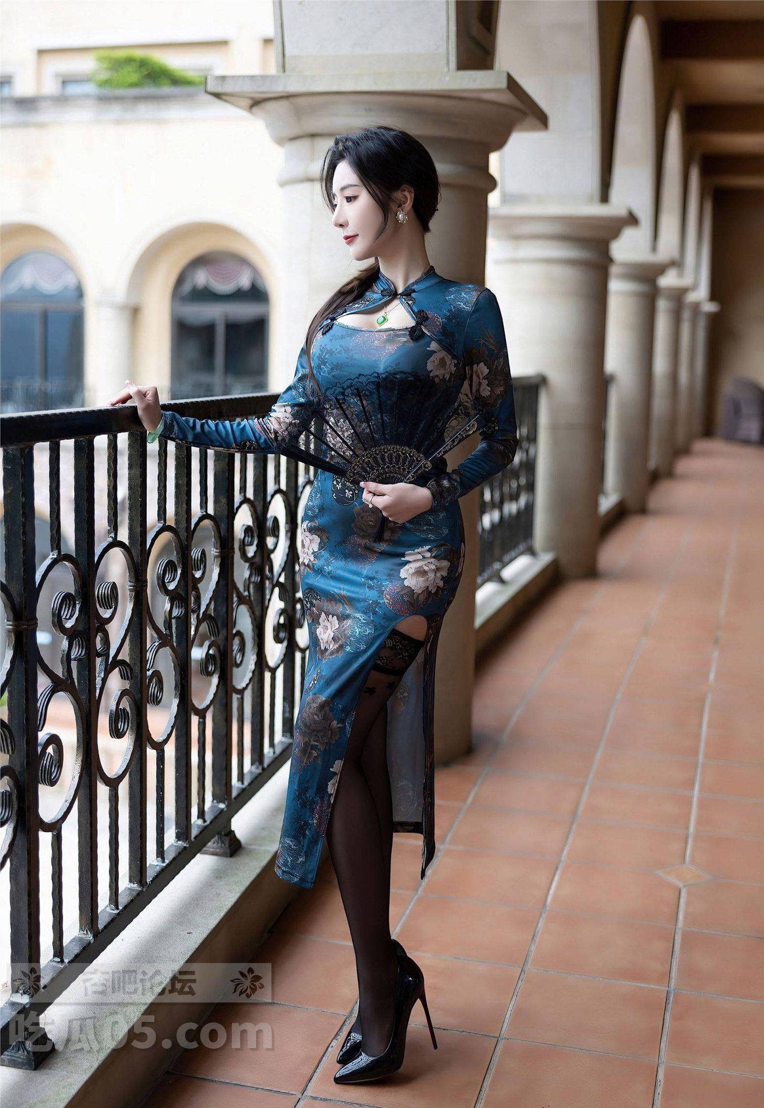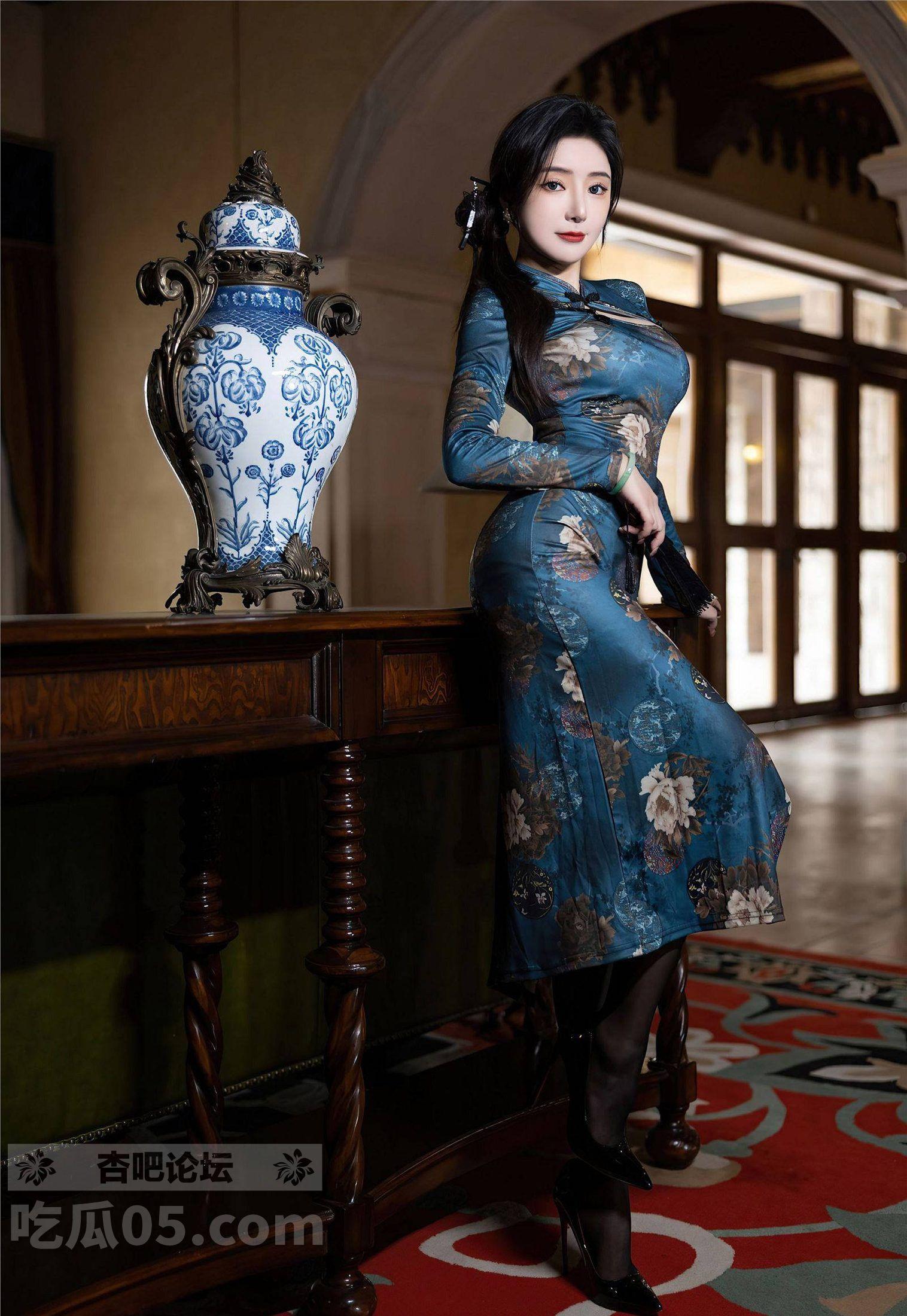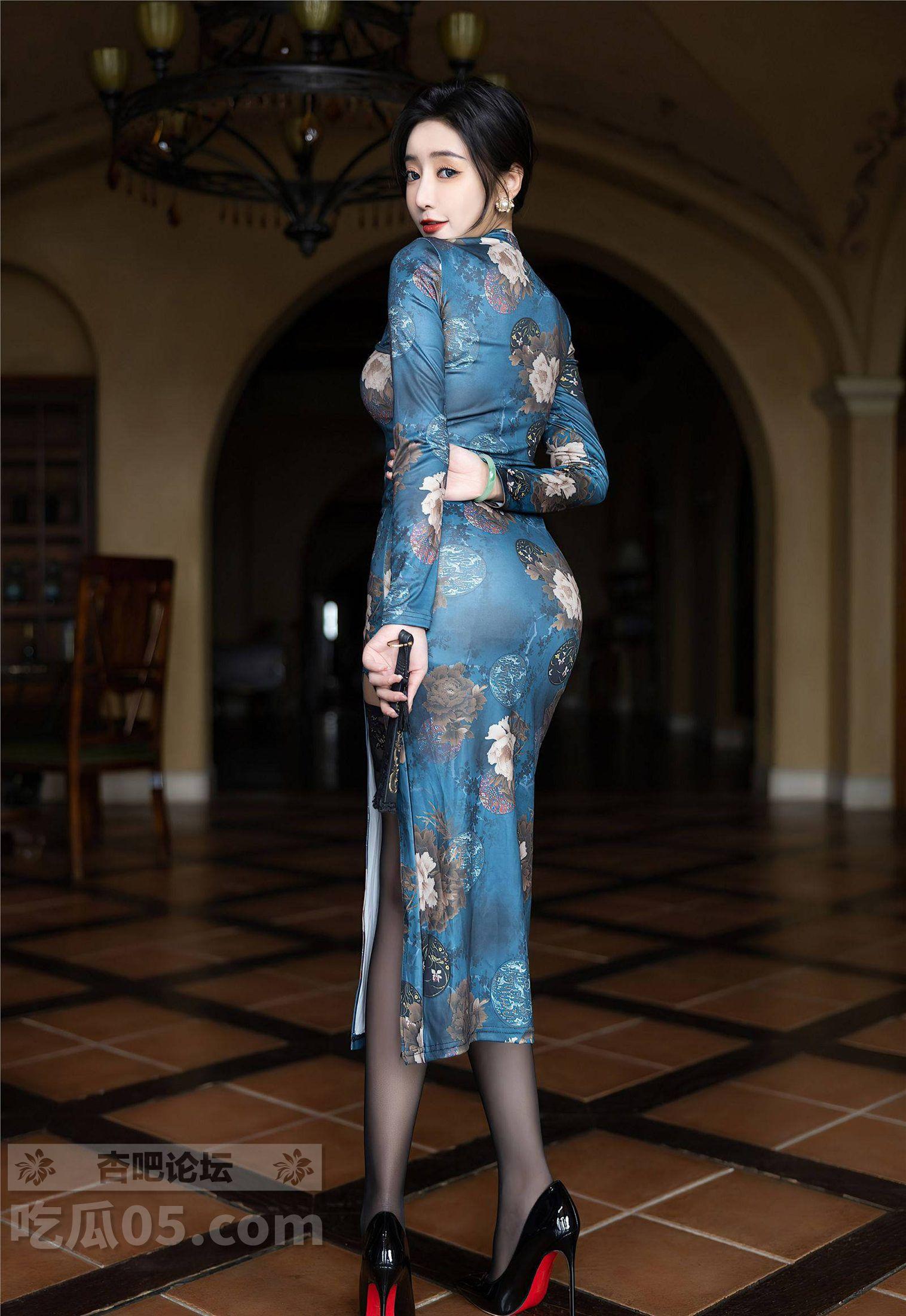 秀人 王馨瑶yanni黑丝蓝色图案旗袍婀娜妩媚,端庄气质撩人心怀【35P】
