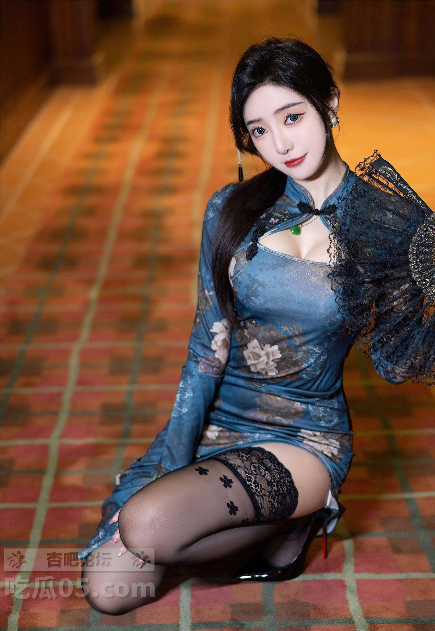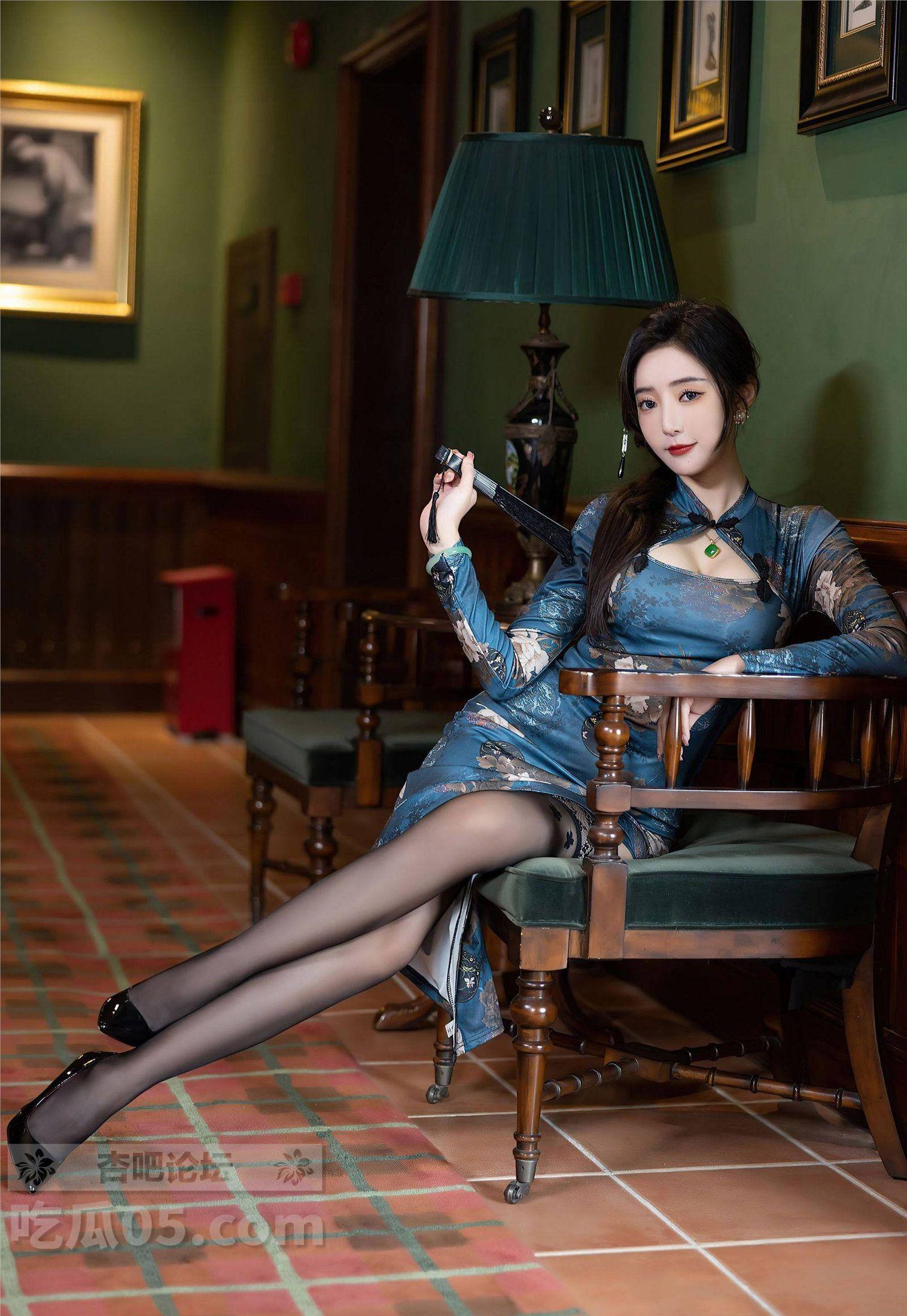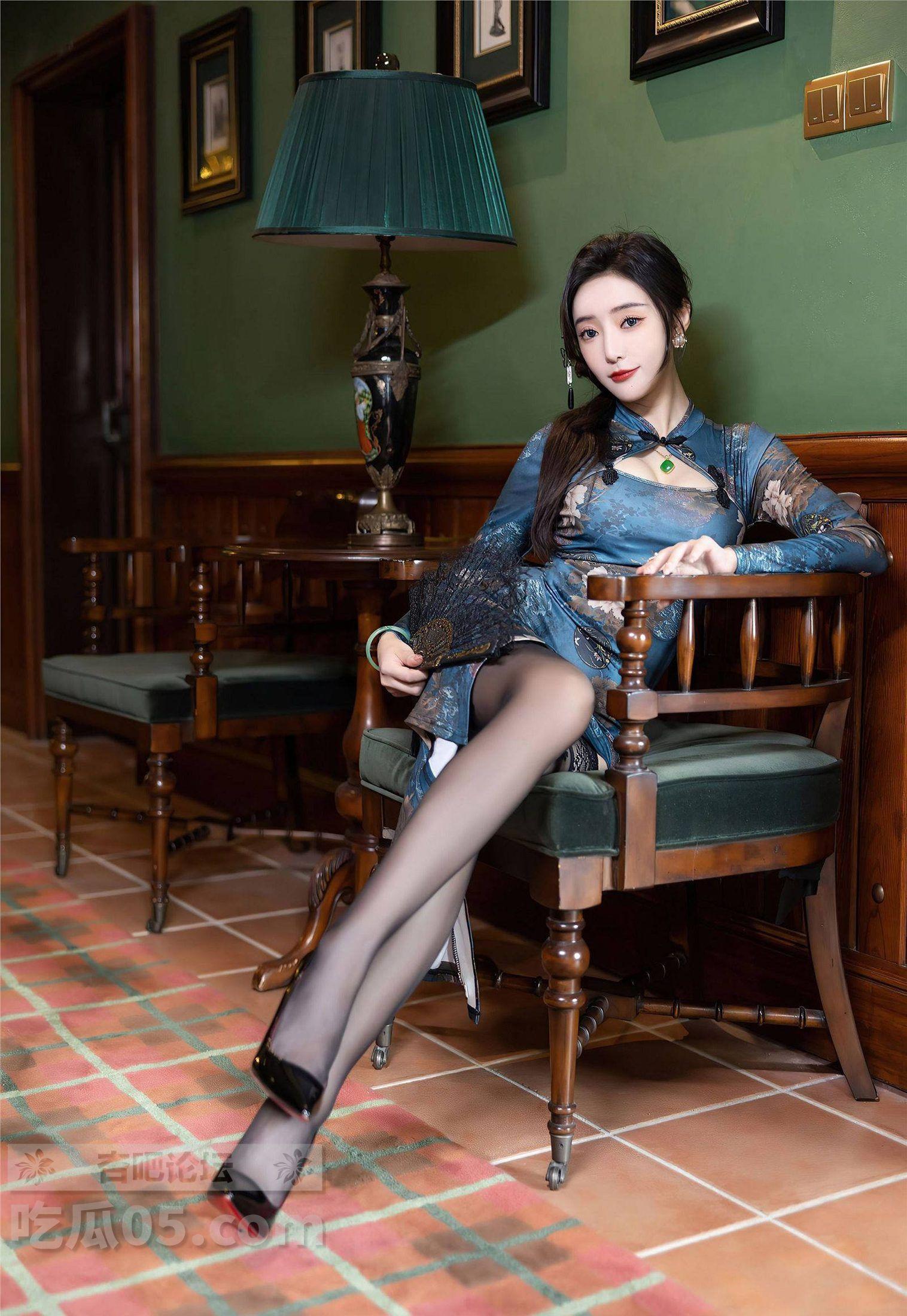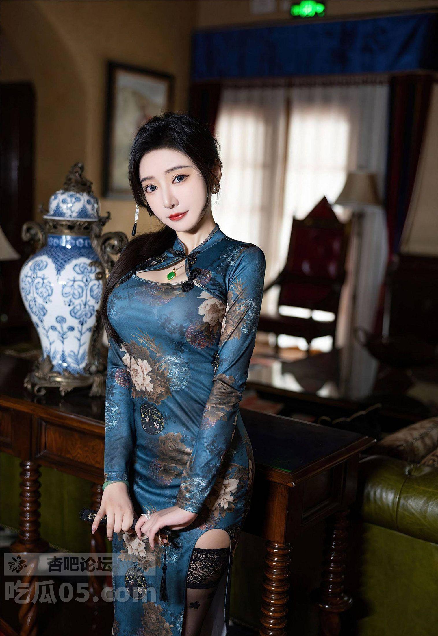 秀人 王馨瑶yanni黑丝蓝色图案旗袍婀娜妩媚,端庄气质撩人心怀【35P】