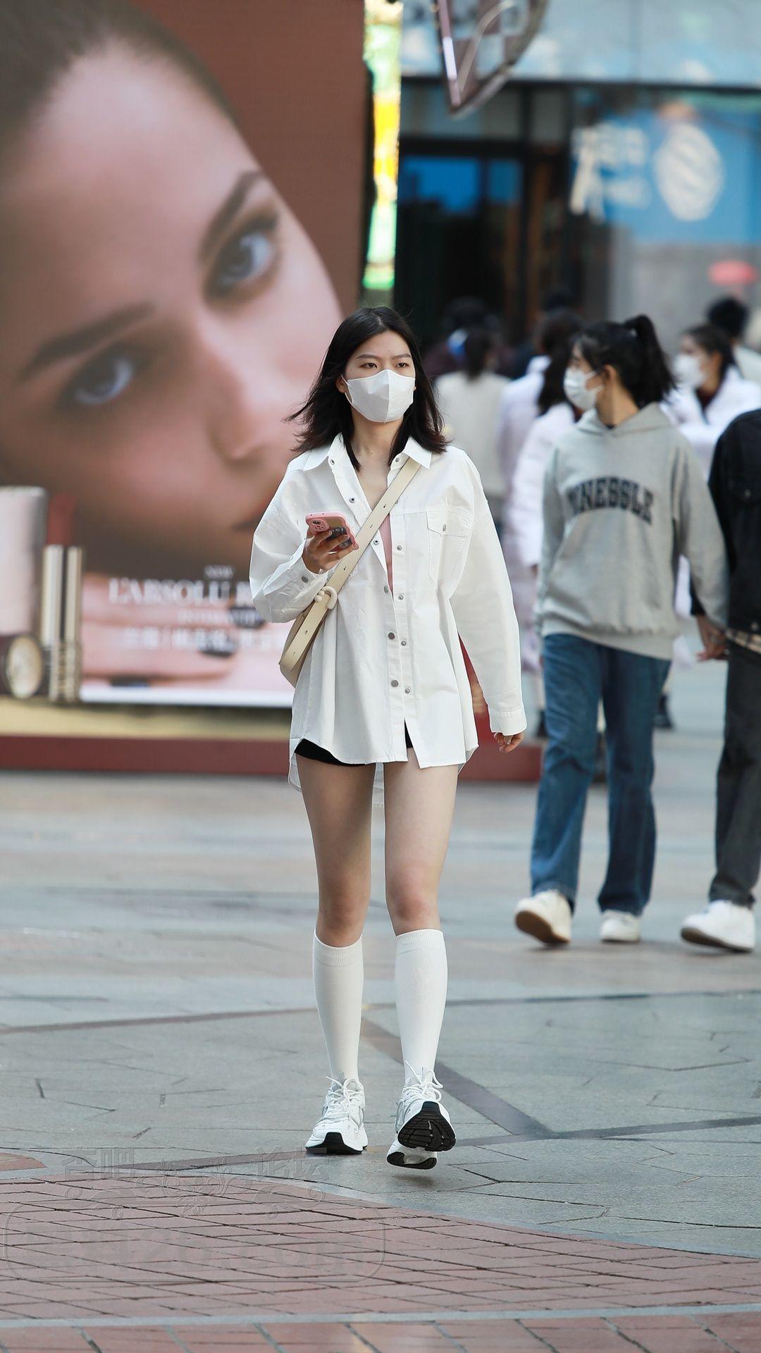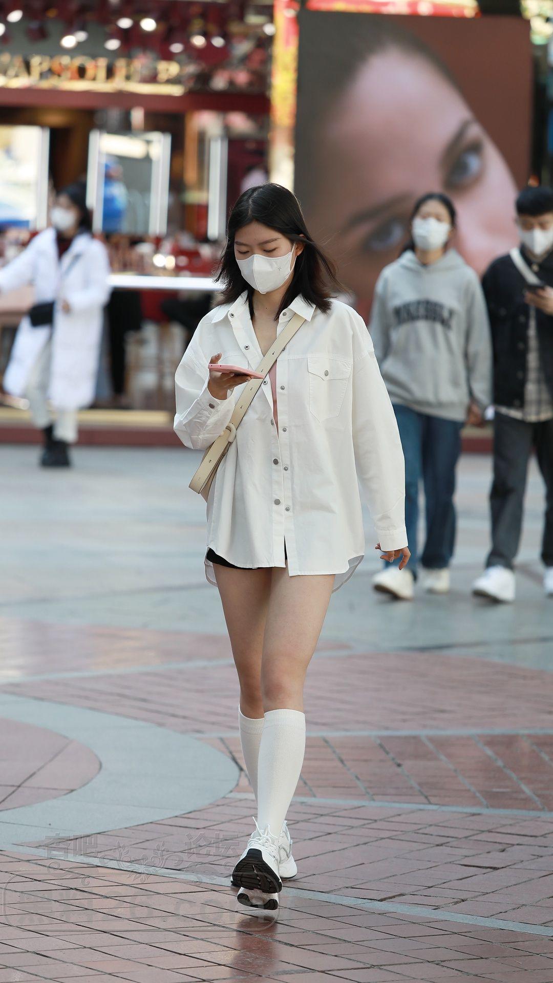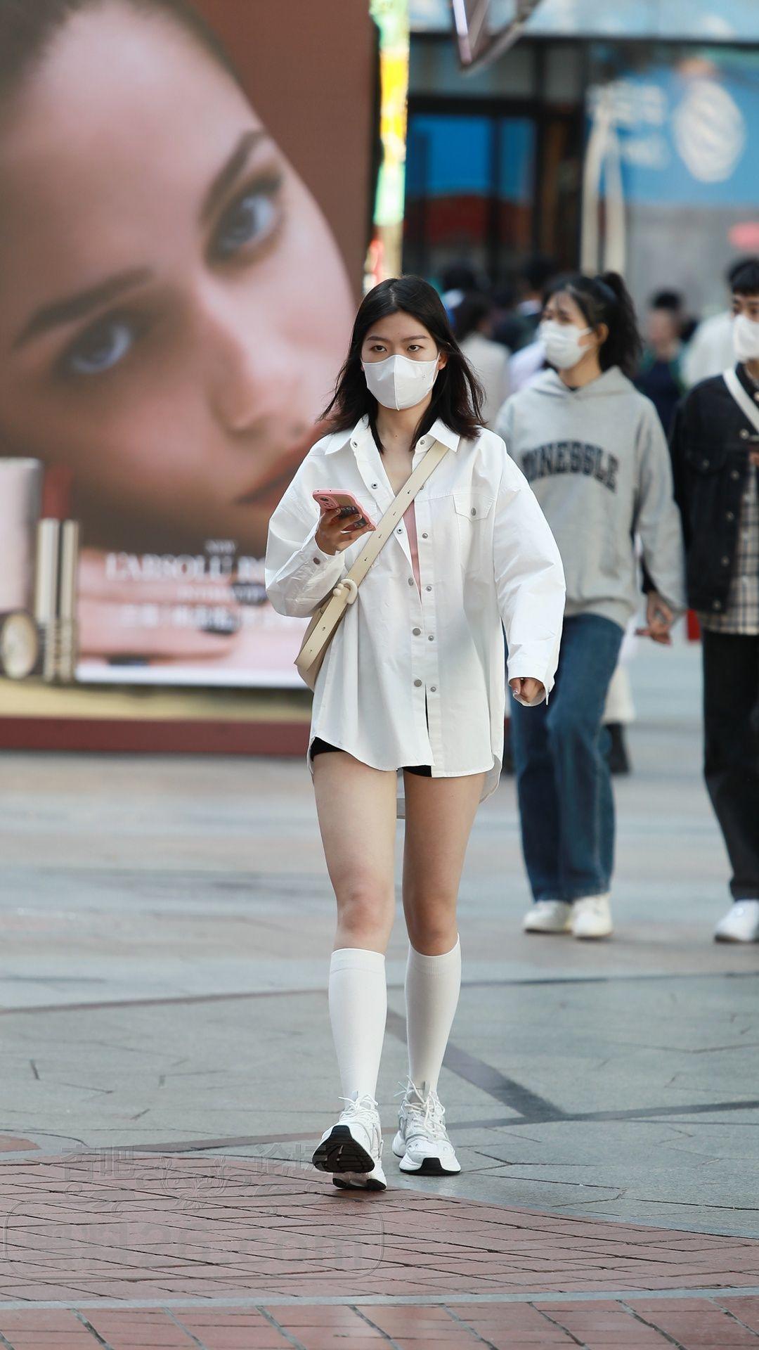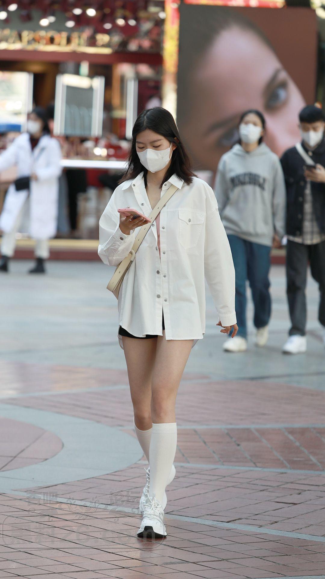 衬衫搭配的下装消失,再加上小腿袜修饰腿型,效果也不错【15P】