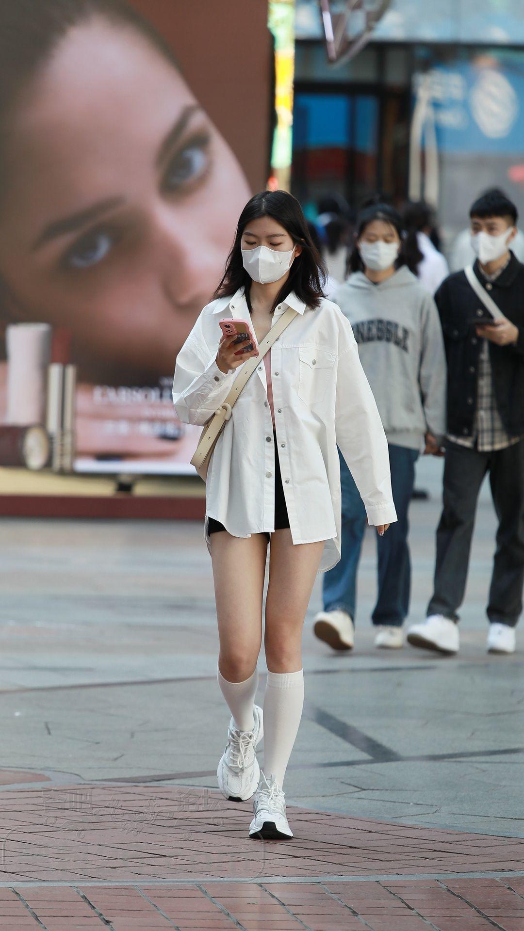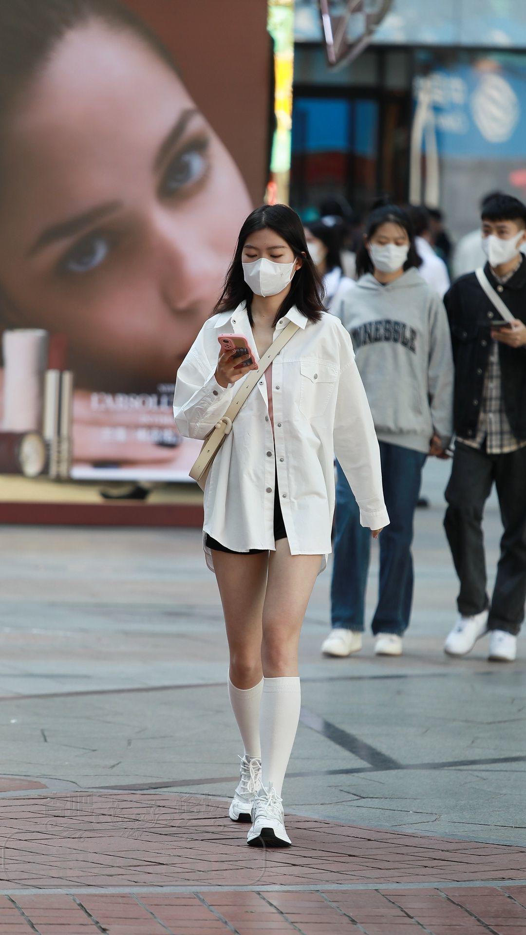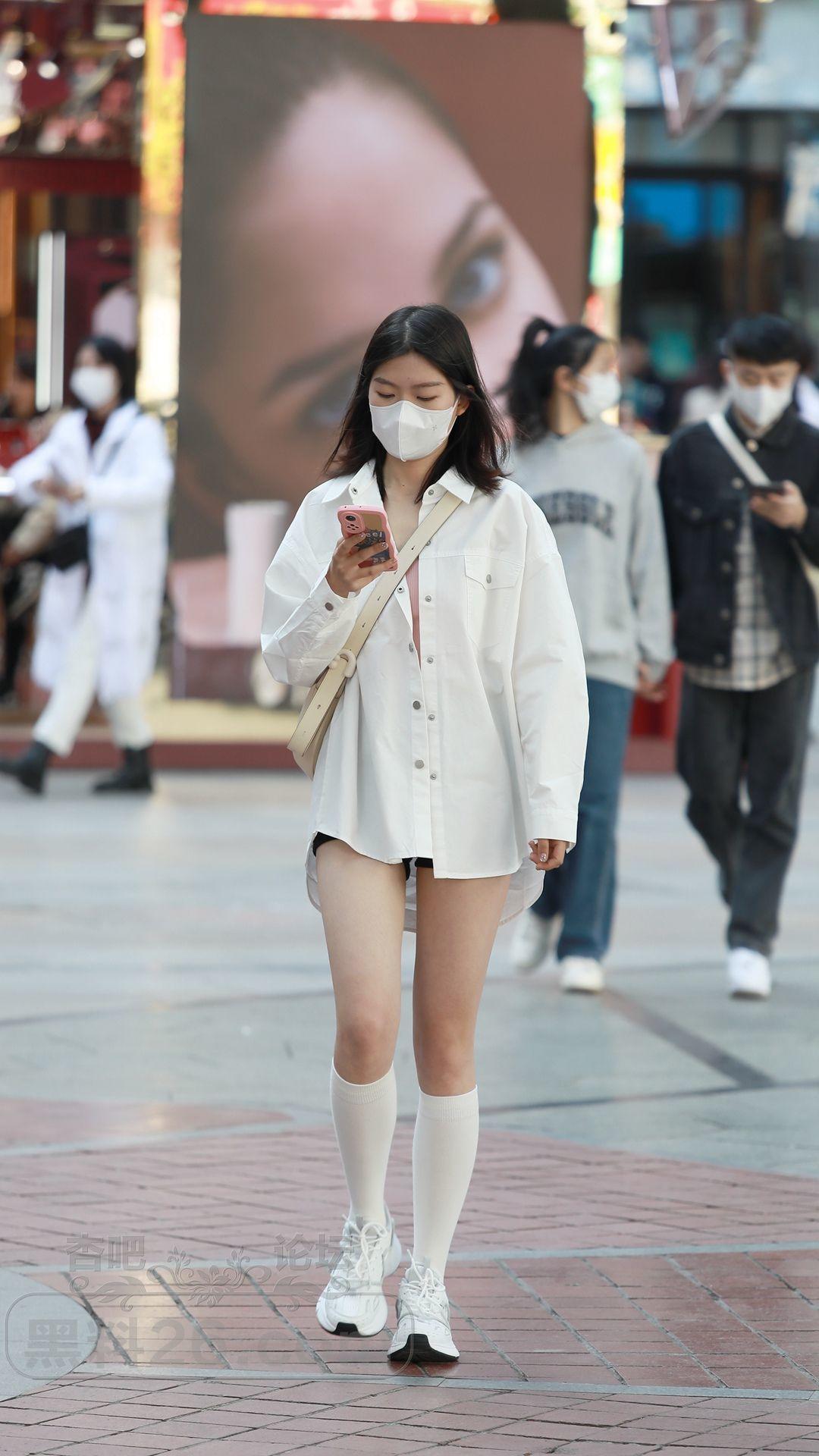 衬衫搭配的下装消失,再加上小腿袜修饰腿型,效果也不错【15P】