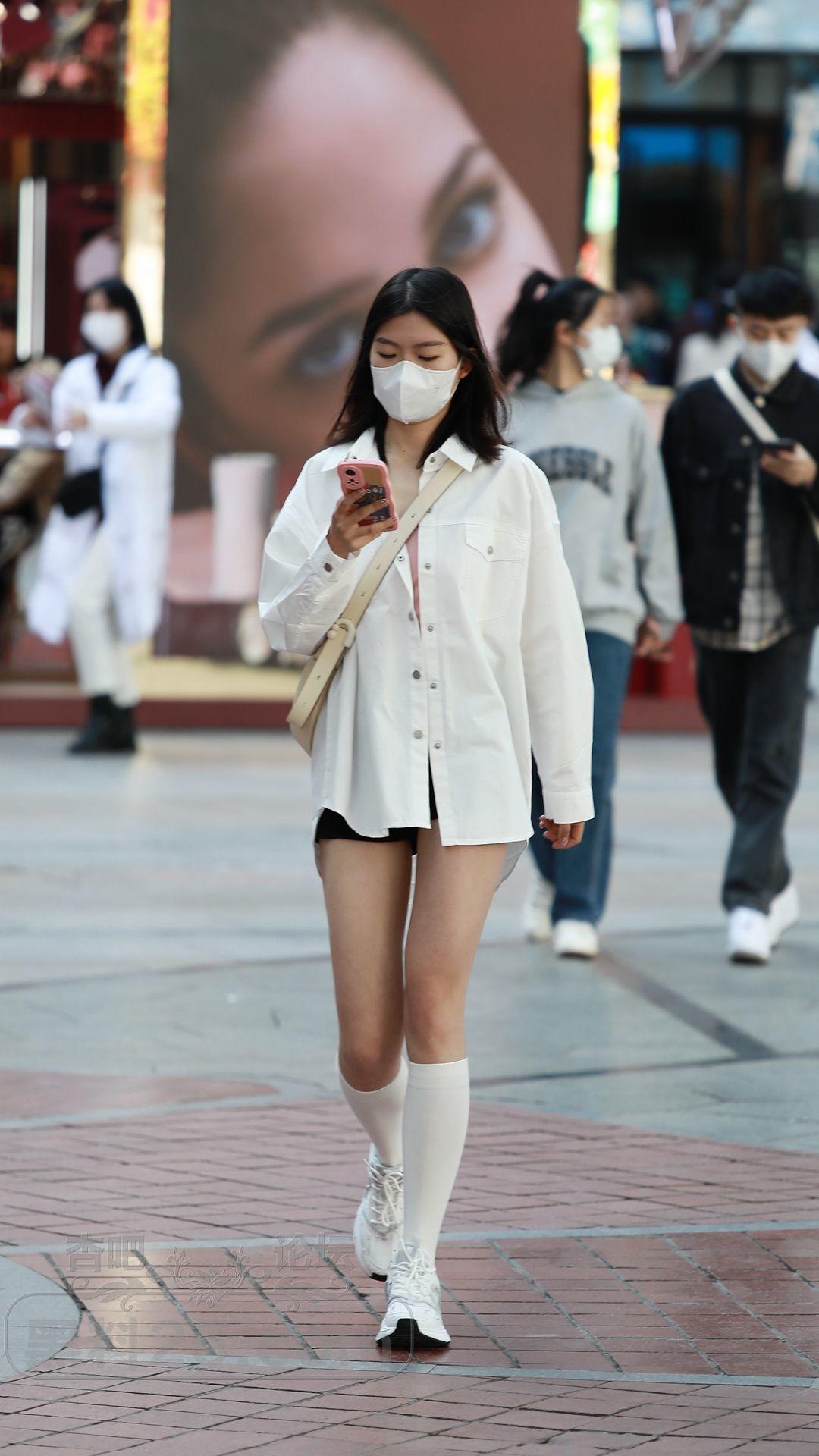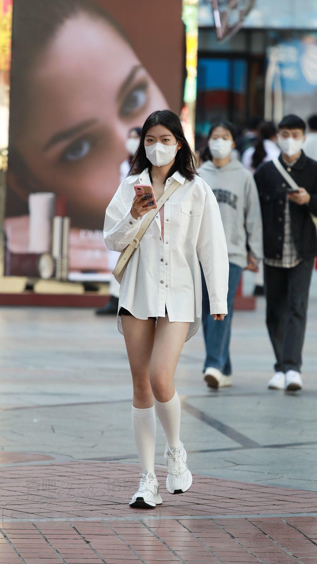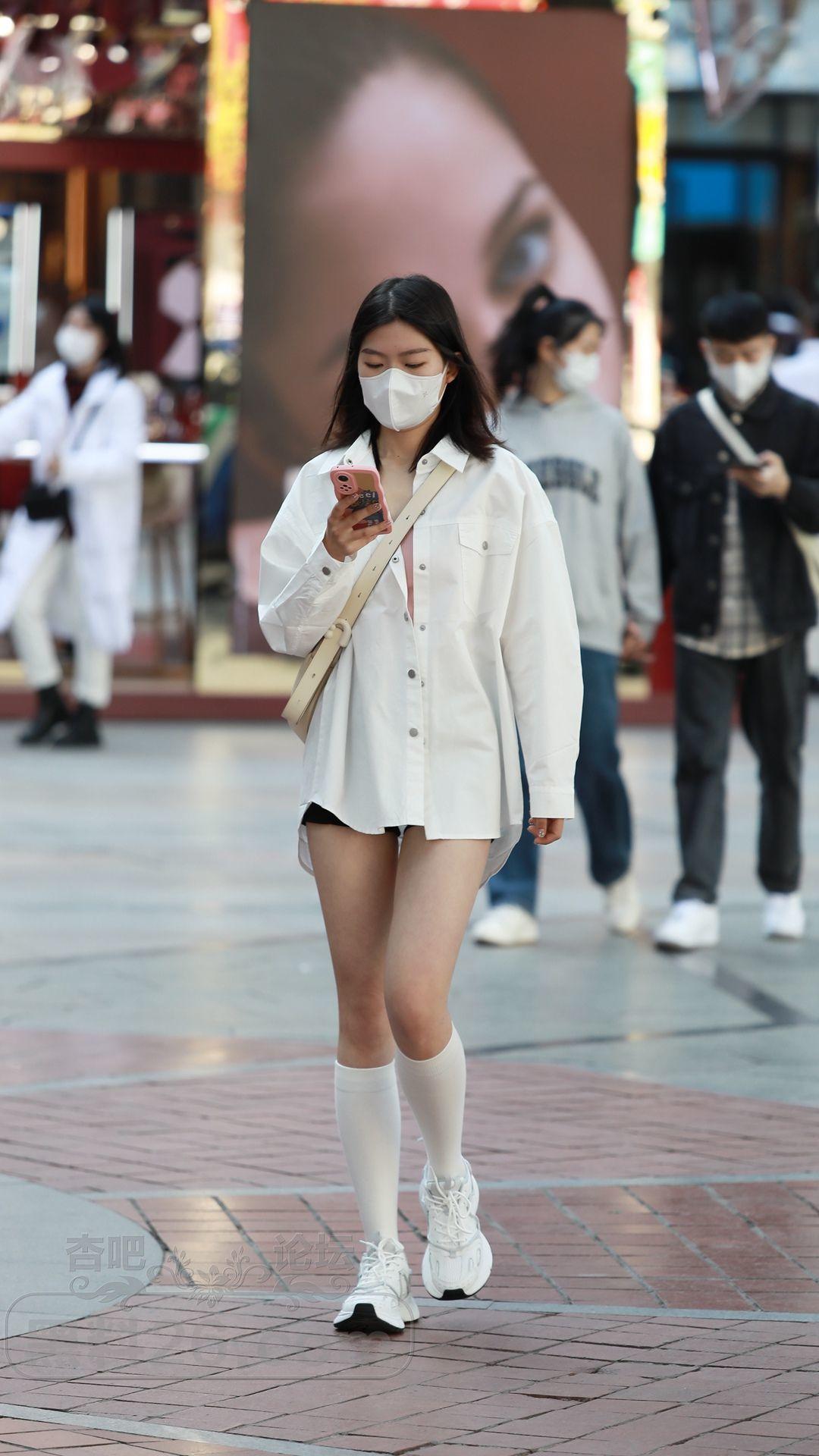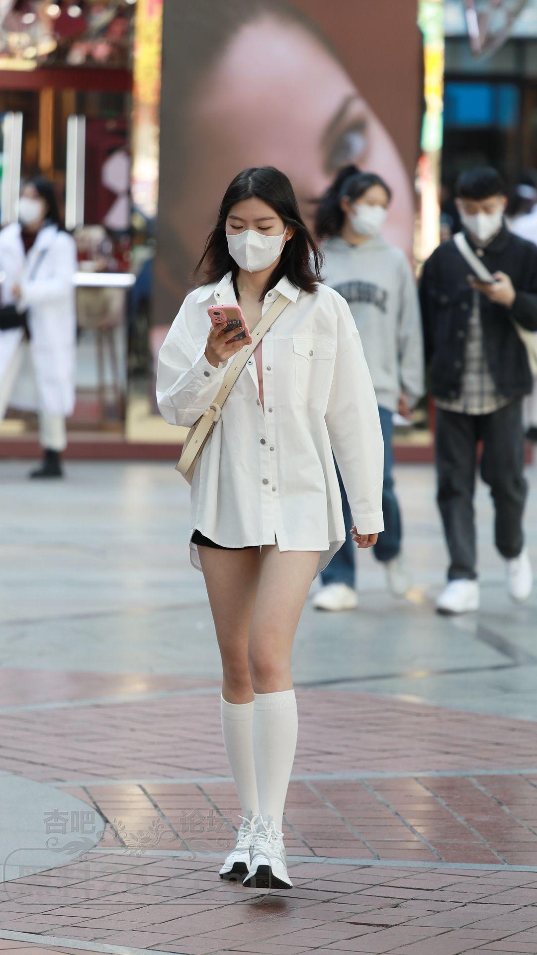 衬衫搭配的下装消失,再加上小腿袜修饰腿型,效果也不错【15P】