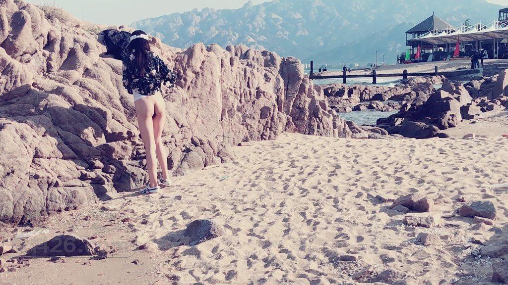 户外肆意的裸露吊钟八字奶黑丝美腿极品尤物