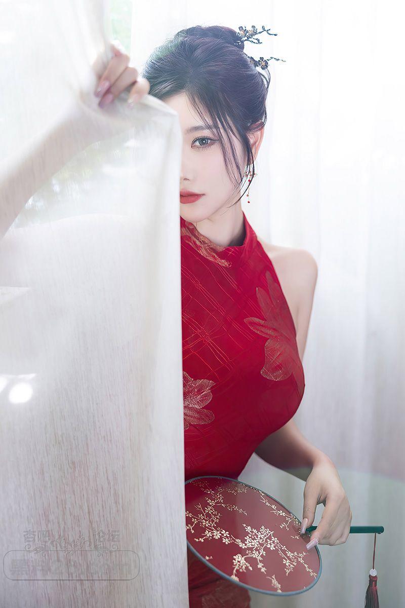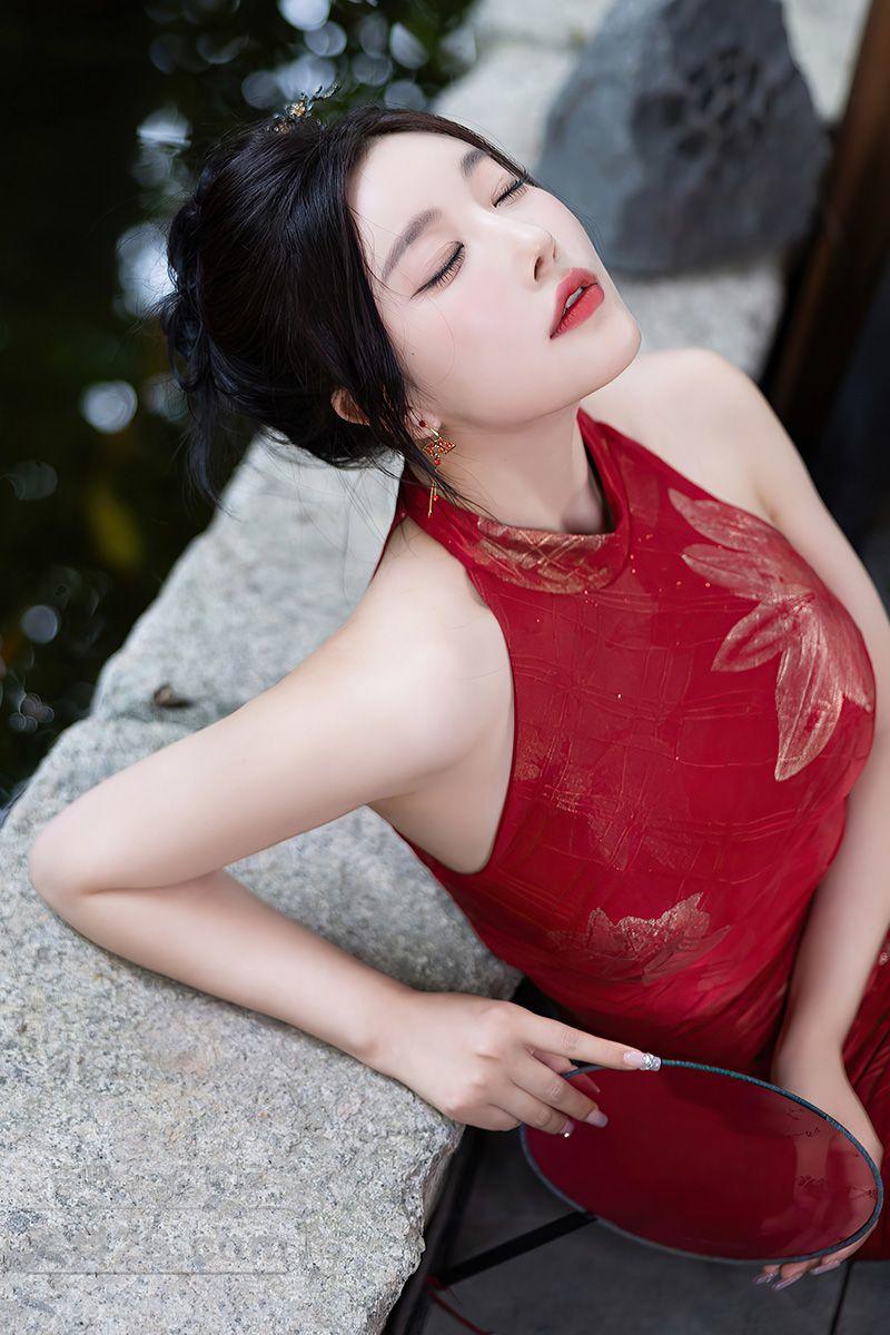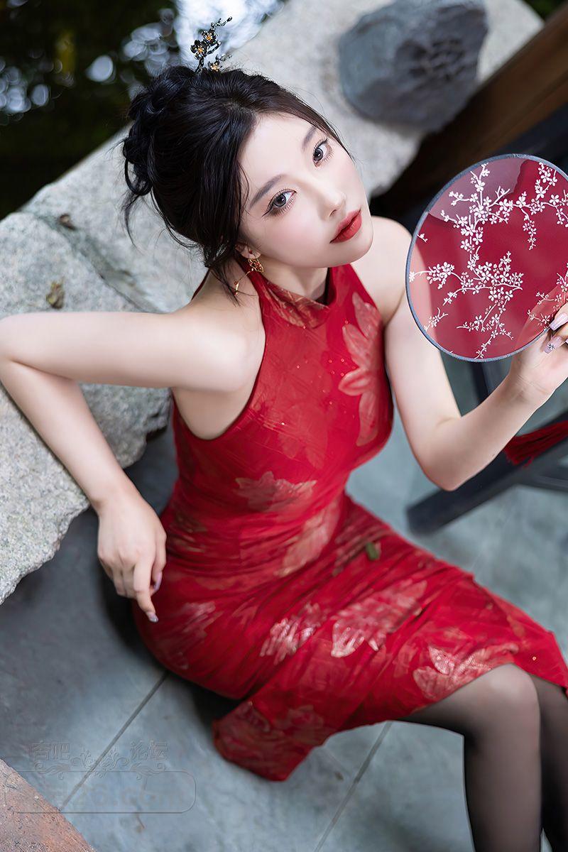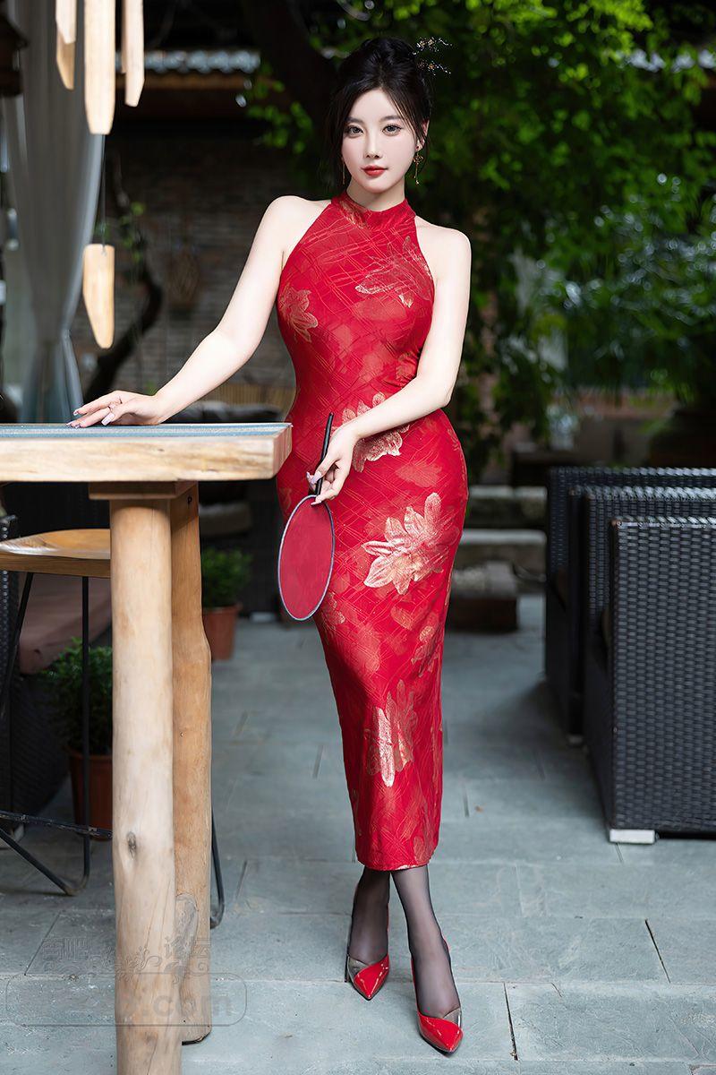 美艳小女人杨晨晨红色无袖紧身旗袍裙勾勒曲线【20P】