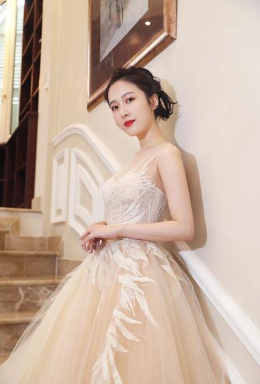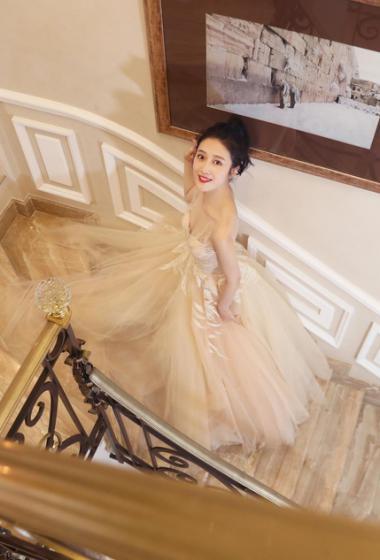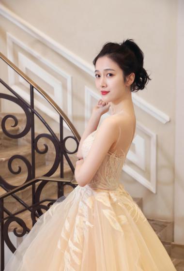 国民人气小花杨欣颖粉色薄纱长裙走戛纳红毯【11】