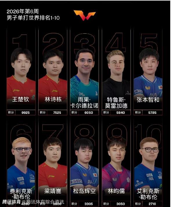 [|热帖精选] 国际乒联公布最新世界排名:王楚钦孙颖莎分列男女单打第一 |