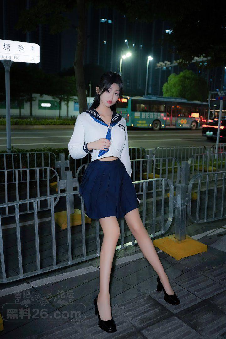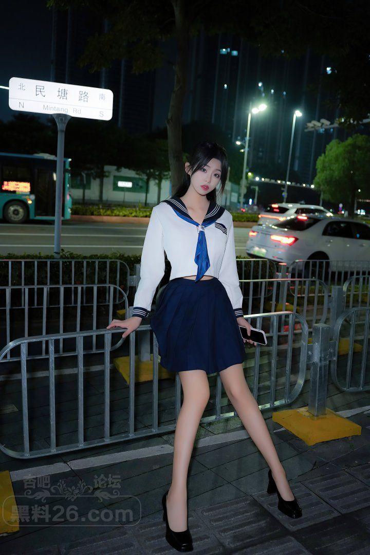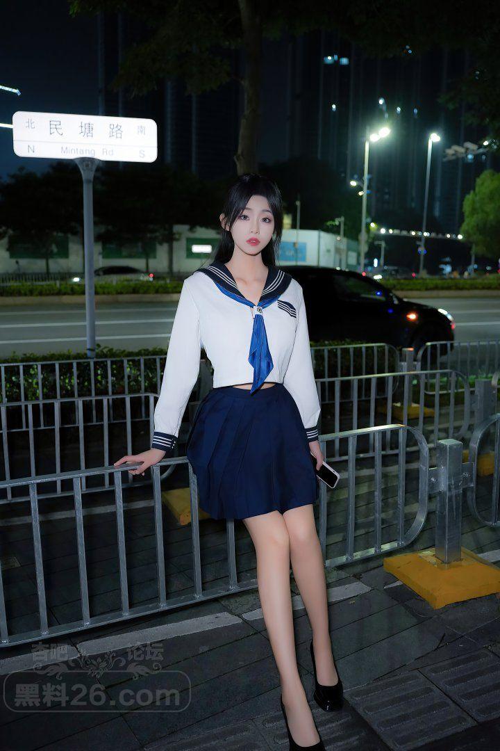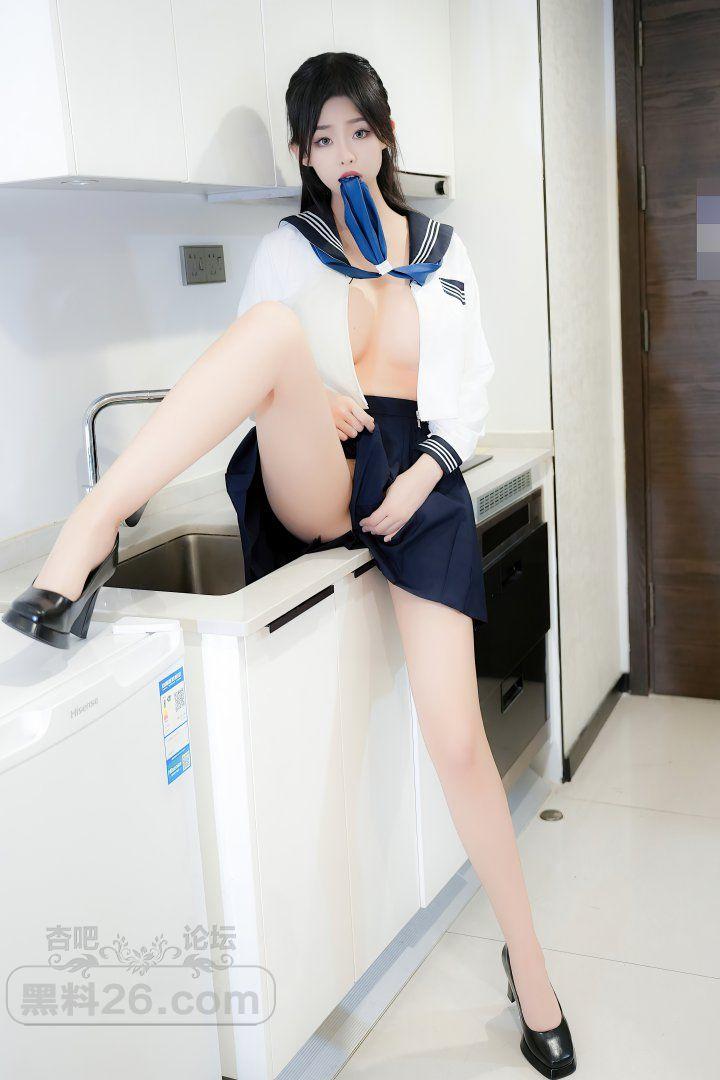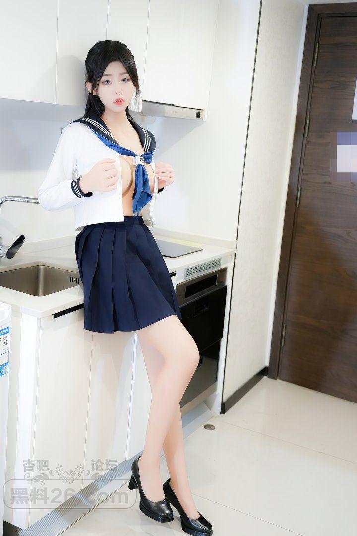甜美长发嫩模董林越蓝色短裙学生装奶子半露【20P】