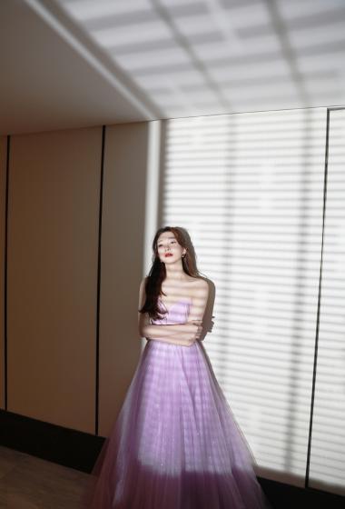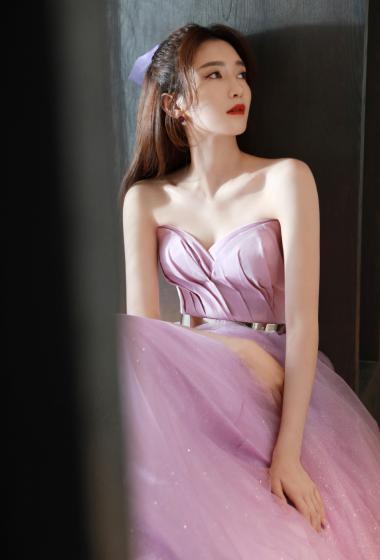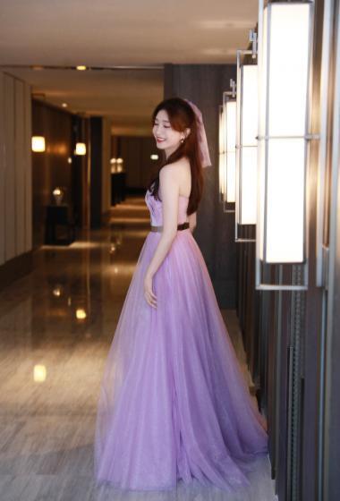 性感美女江疏影浅紫色晚礼长裙香肩藕臂销魂【10P】