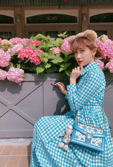 美女李艺彤蓝色连衣裙游乐场清新俏皮【15P】