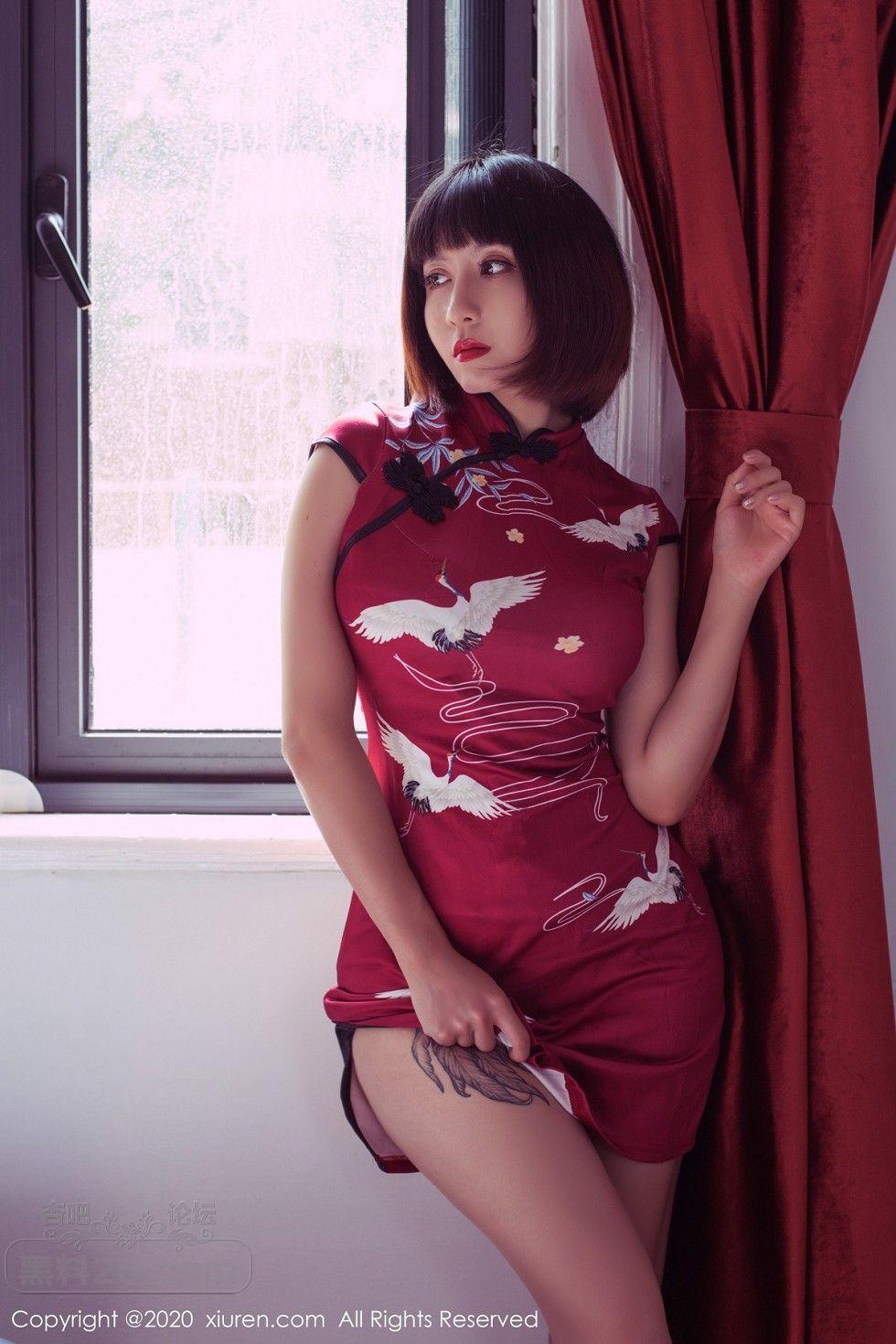 [美腿翘臀] 大美妞安妮斯朵拉私房红色旗袍露红色内衣秀翘臀撩人诱惑写真【50P】 |