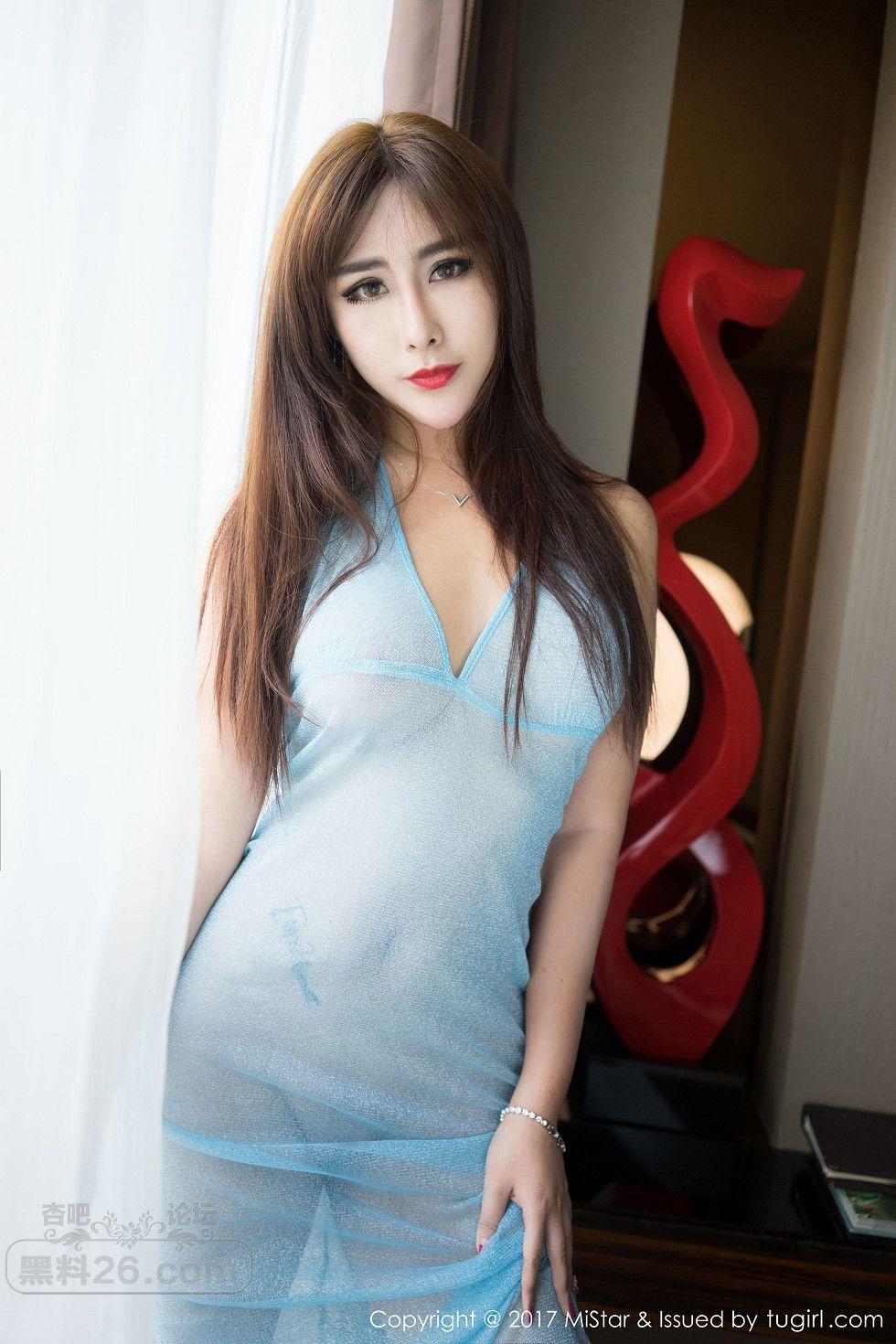 [美腿翘臀] 尤物FoxYini孟狐狸蓝色薄纱连身裙透视秀豪乳妩媚诱惑写【45P】 |