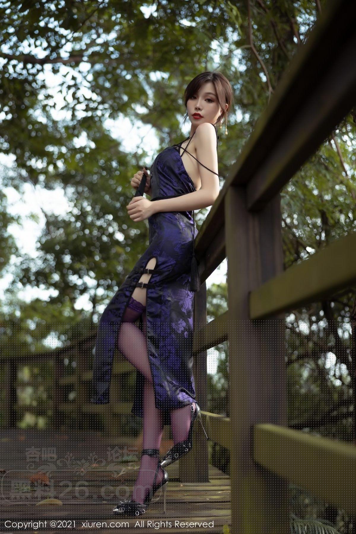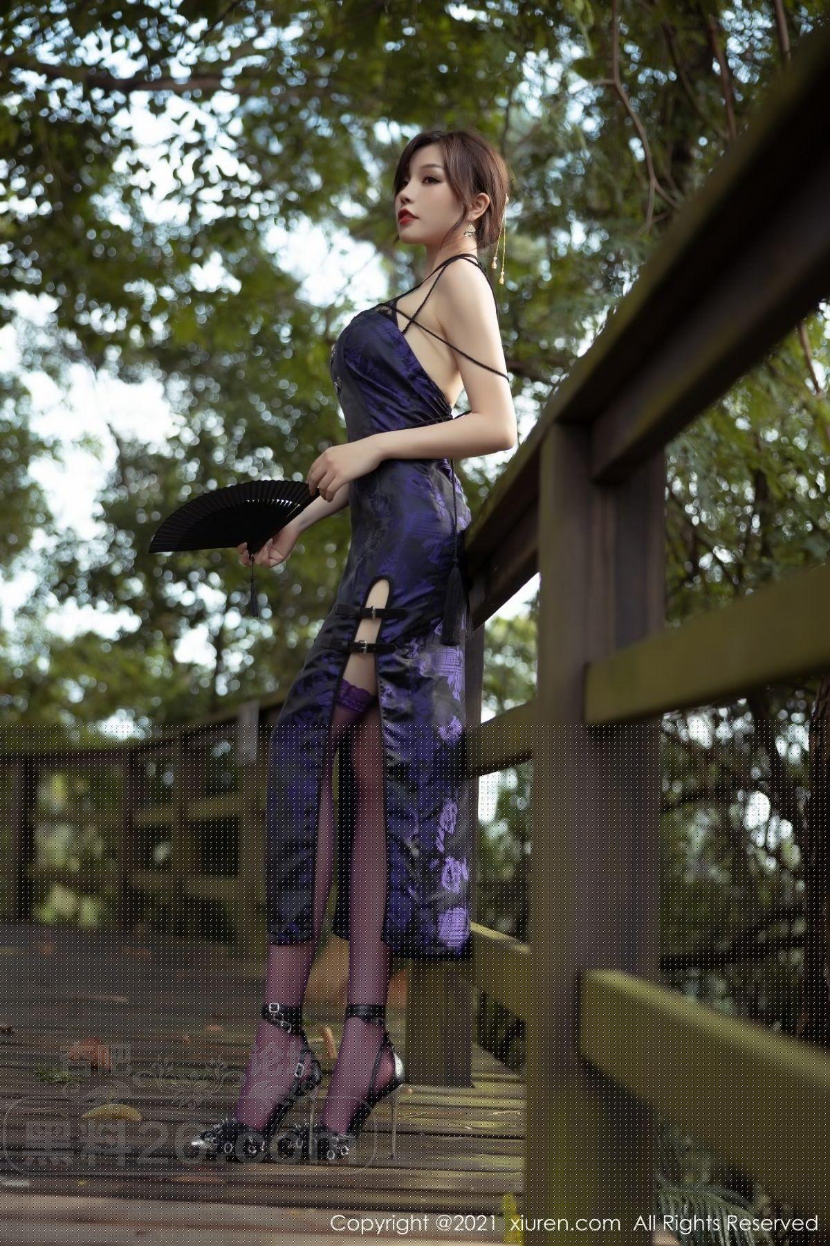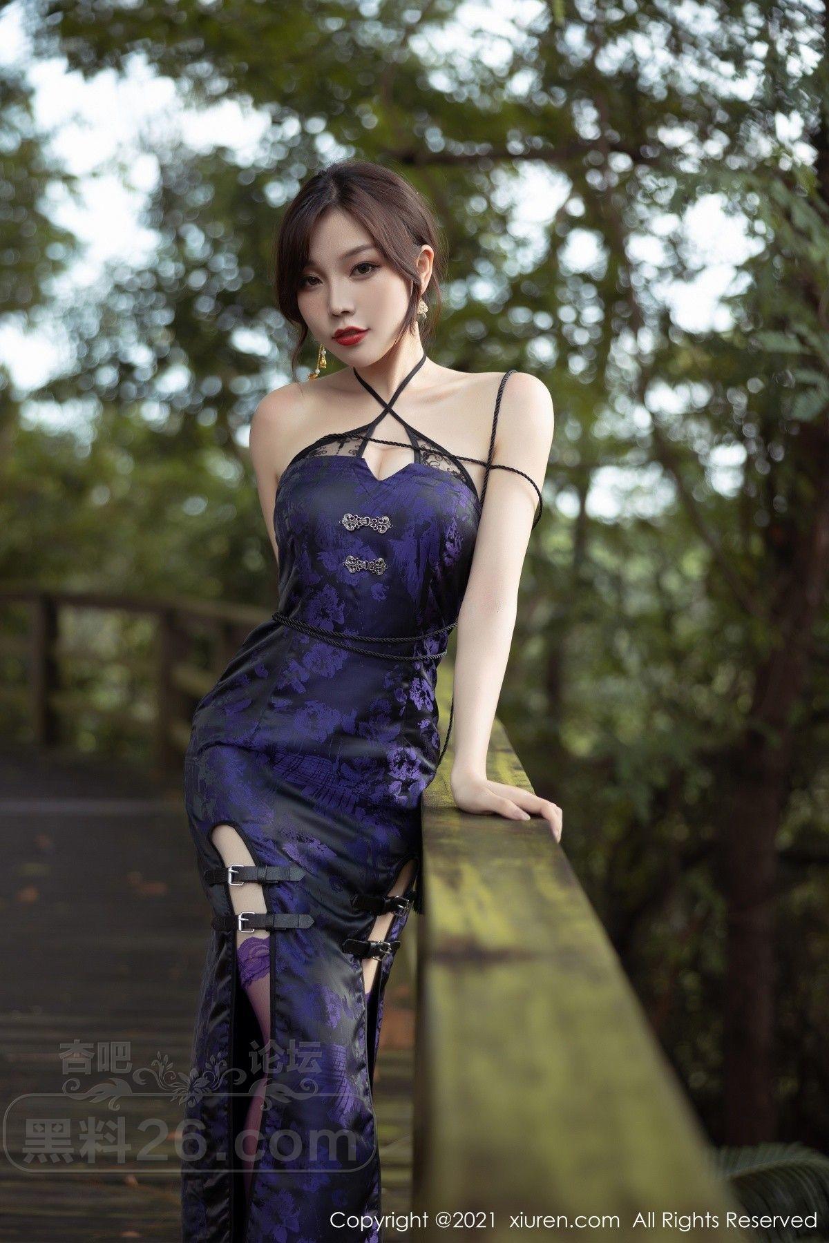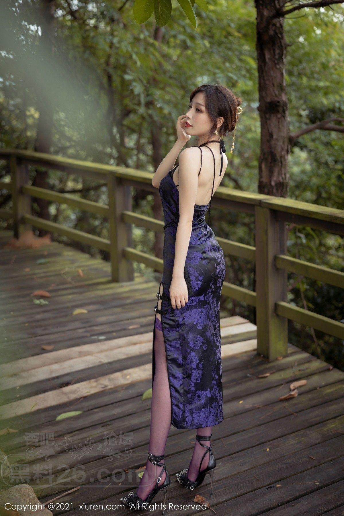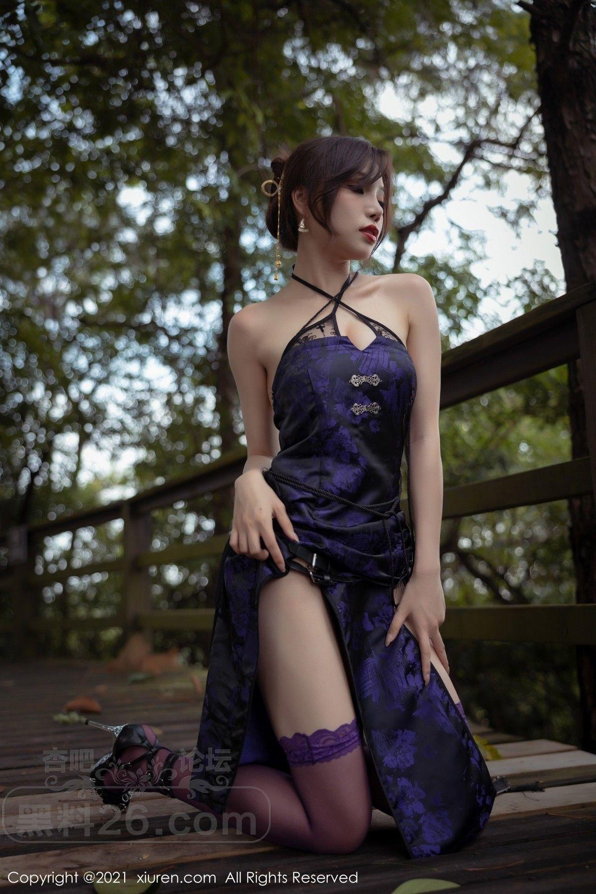 [美腿翘臀] 女神芝芝Booty私房紫色古典旗袍配薄透内裤秀翘臀美腿诱惑写真【50P】 |