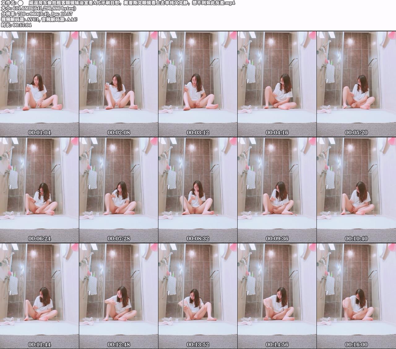 [猥琐盗摄] ⚫️咸湿房东偷拍租客眼镜妹浴室看A片牙刷自慰,戴着斯文眼镜看上去单纯又文静,想不到如此反差【17:04/WF】 |